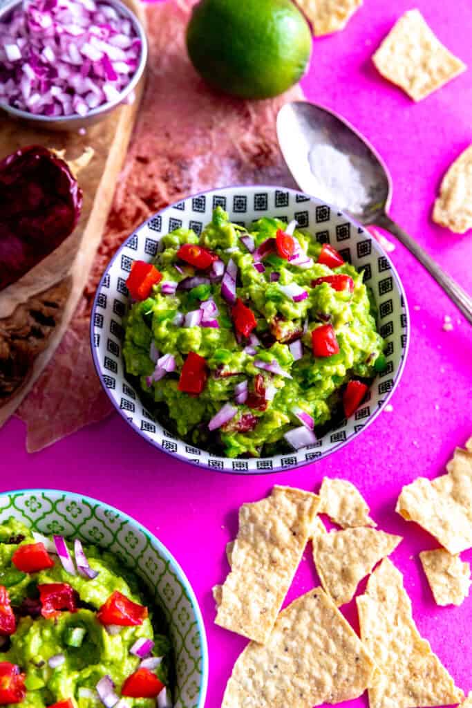 This is the best ever guacamole recipe of all time for a reason! Fresh avocado, tasty spices and fresh veggie chunks galore!