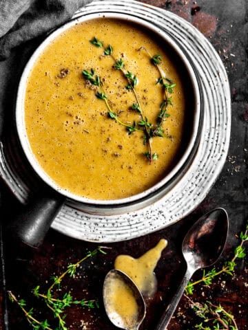 Pumpkin Tomato Soup with "Cheezy" Croutons (Vegan + GF)