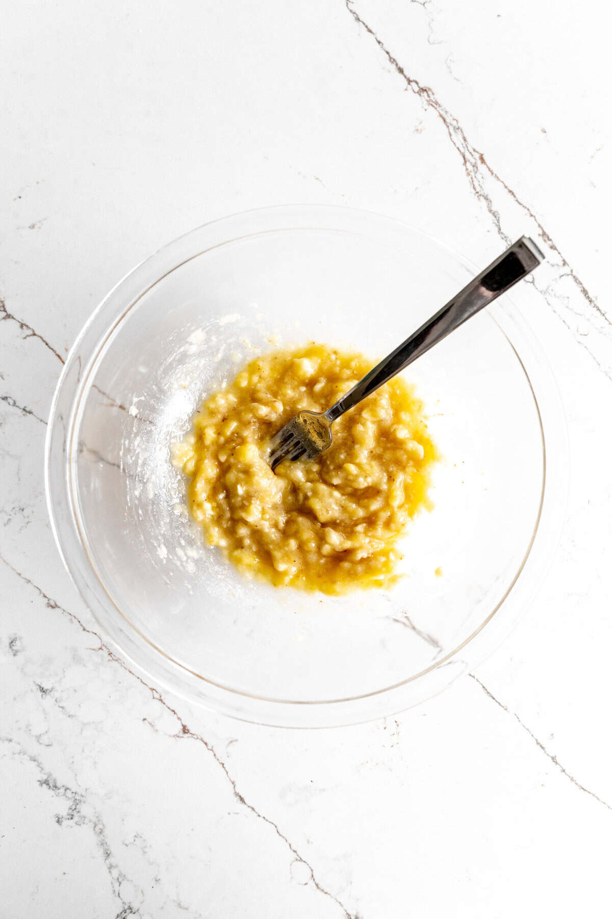 - Mash bananas well: For the best texture, mash bananas until mostly smooth with just a few small lumps. You can use a fork or potato masher.