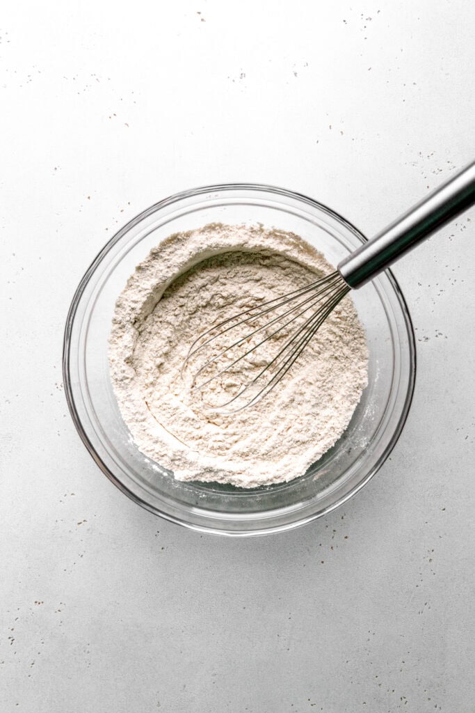Begin by whisking together all of the dry ingredients. Add the remaining waffle ingredients to the bowl and mix until just combined. Do not over-mix!